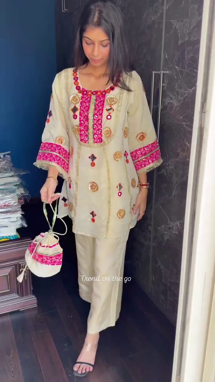 Partywear pure shimmer tissue designer gota patti coord set