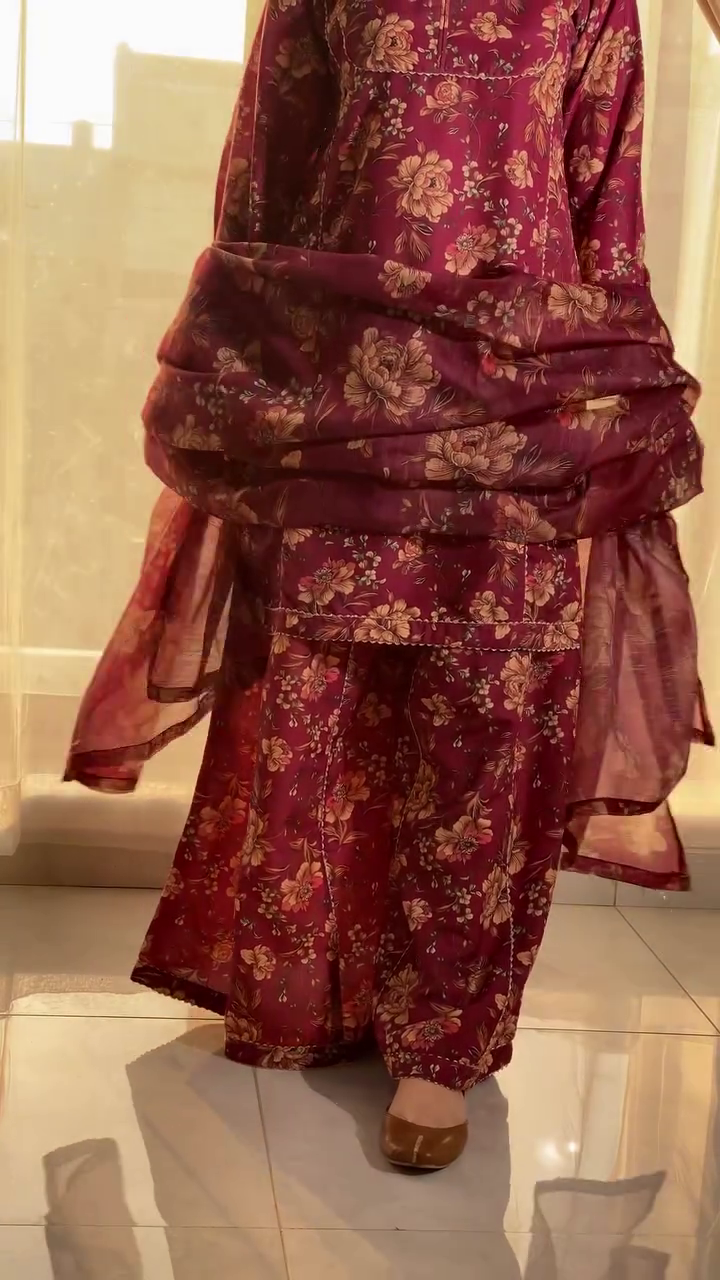 + Free ShippingWomen’s Cotton Blend Straight Floral Print Kurta with Palazzo & Dupatta